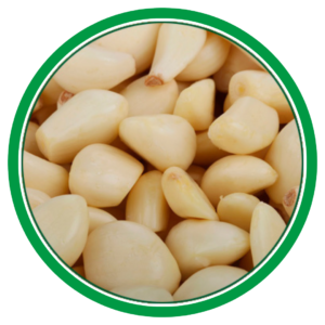 Se presentan enteros y pelados, envasados en bolsas de 1 Kg.